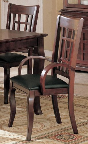 Set of 2 Dining Arm Chairs Black Leather Like Rich Cherry Finish Reviews